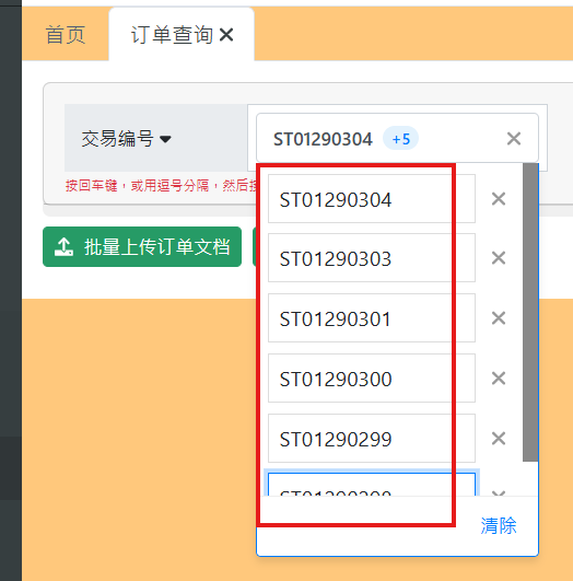 - 通过Order # (订单号码)、PO # (采购订单号码)、WMS # (仓库单号)或Tracking # (面单号)搜索多个订单。 可以逐个输入单号,或将多行单号复制粘贴到搜索框中,一次性查询多个记录。
